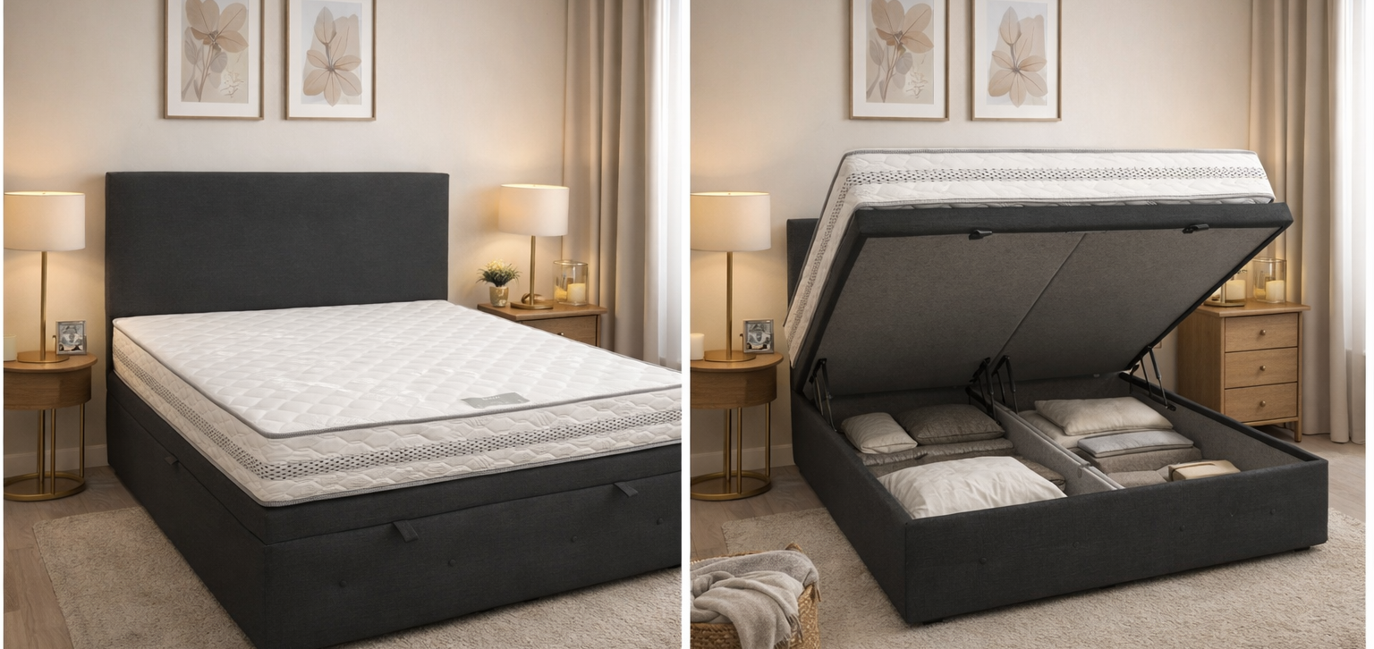 SOMMIER COFFRE DE RANGEMENT ET TETE DE LIT
