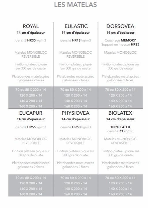 Le matelas Eulastic est conçu en mousse ergo, sa densité est de 43kg/m3